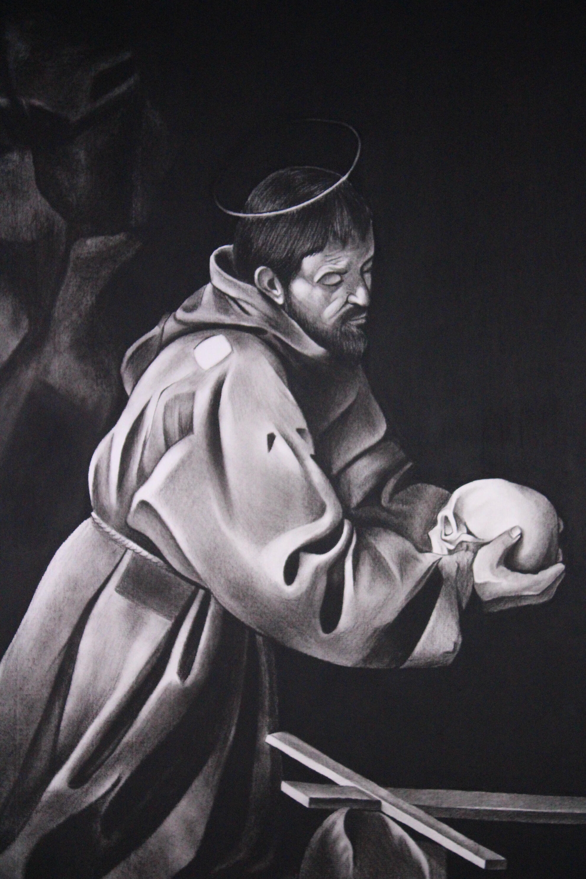 A charcoal and conte recreation of Caravaggio's "Saint Francis in Prayer"